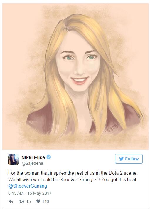 《DOTA2》中女性玩家与解说本身就是一种稀缺资源,而Sheever的出现也成功的将《DOTA2》带入了广大女性玩家的视野,希望希望她能战胜病魔,并继续活跃在DOTA2的赛场上。(转自3dm)