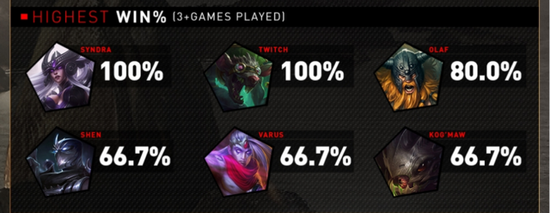 胜率最高的出场英雄(至少出场3场或3场比赛以上的英雄)。