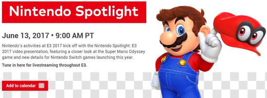 与其他大型厂商不一样,任天堂依然不会在E3上召开展前发布会,而是在太平洋时间6月13日上午9点(北京时间6月14日凌晨0点)通过官网(http://e3.nintendo.com/)举办名为任天堂聚焦(Nintendo Spotlight)的视频发布会,时长大概30分钟到一个小时,揭晓年内即将发布的多款NS新作的更多细节。