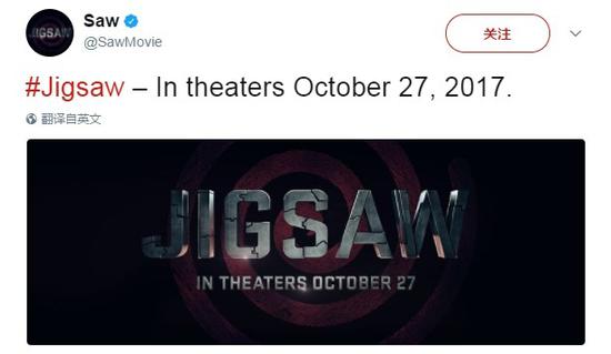 狮门影业的经典恐怖片系列《电锯惊魂》将在今年万圣节归来,今日片方在推特上宣布,这次的续集《电锯惊魂8》将正式定名为“拼图”(Jigsaw),正是系列杀人魔主角约翰·克莱默的外号,同时电影的官方LOGO也一并公布。