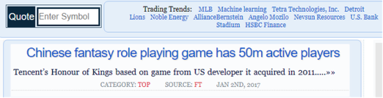 英国金融时报在今年年初也撰写了一篇报道,重点提及《王者荣耀》,分析游戏火爆的一大原因来自于腾讯的社交平台,微信和QQ,其在中国有着数以亿计的用户。