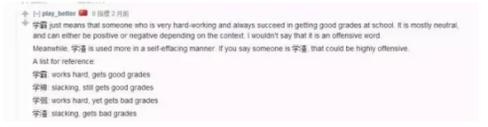 有人好奇回复问“‘学霸’是‘书呆子’的俚语吗?”然后获得了中国网友的细心解答。