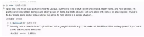楼主回复:“我通常都截屏,然后把图片上传到谷歌翻译app。我能弄懂不同的铭文和装备。如果你做个百科,那就真的是太棒了!”