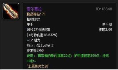 曾经的60年代中,若是你拥有一把奎尔塞拉,便是神!因为它不仅仅是每一个战士的梦想!它那夸张的属性更是作为MT的象征!记得曾经有这样一句话“没有拿过奎尔塞拉的战士,都不叫战士!”
