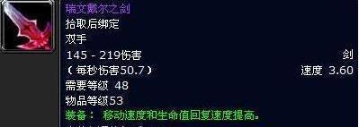 这把剑可以提高移动速度、生命值回复,是一把双手剑,跟《war3》中的死骑邪恶光环的效果是完全一样的,但是只能够对单人使用,并且它还拥有十分惊人的破坏力和酷炫无比的外表,当年,在战歌峡谷之中,瑞文戴尔之剑的特效兼职就是一个外挂!