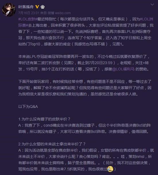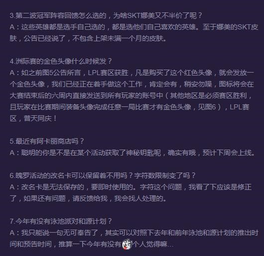 根据该微博用户透露的消息,阿卡丽商店将在下周上线,另外关于之前魄罗活动中获得的改名卡,他提醒玩家们及时使用,因为改名卡是无法保存的。另外该改名卡的字符数限制问题已经修复。而洲际赛金色头像也很快就将上线。除此之外他还解释了女警未来战士皮肤半价、SKT娜美不半价的原因。