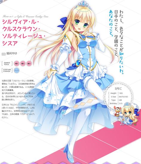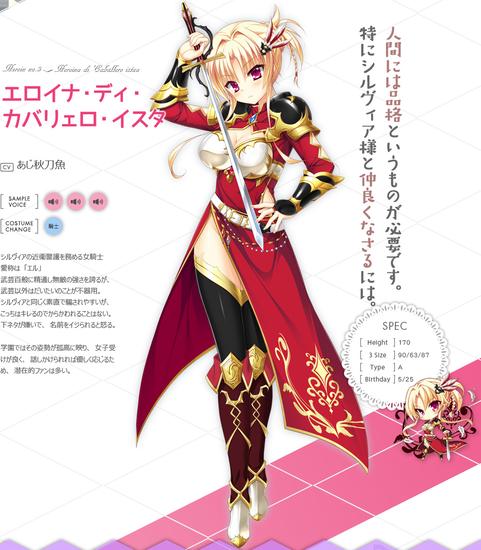 在游戏中登场的女主角包括了有些不谙世事的天真烂漫的公主西尔维亚,担任西尔维亚护卫的女骑士Heroina,活泼开朗的人气女孩妃玲奈,性格阴暗的不良少女僧间理亚。不过遗憾的是女配角们并非金发。而且最重要的一点是,主角中竟然并没有王道的金发双马尾萝莉!这也让不少网友表示不满……