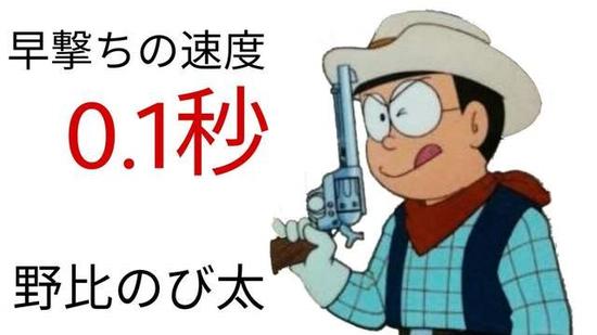 当然,尽管上面提到的这些专业枪手射速都非同一般,但下面的这位门外汉却比他们更为可怕——这个人就是《哆啦A梦》的主人公野比大雄,他只需要0.1秒便可以发射出来。