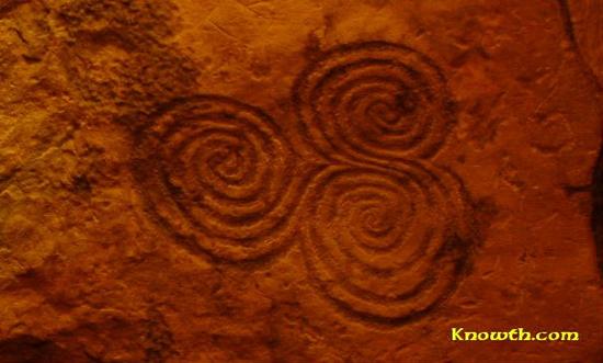 虽然一般被认为是凯尔特文化的图案,但凯尔特人可以说是坐享其成:这个图案最早出现在爱尔兰米斯郡的一处史前遗迹岩石上,而这个遗址的建立时间约在公元前3200年,还需要再等两千年,凯尔特人才真正出现。