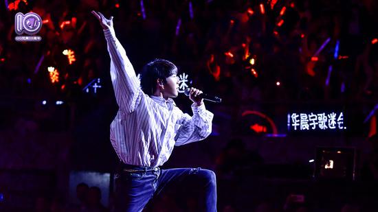 最后压轴的是华晨宇,《微光》《齐天》《异类》三首歌曲将现场热度带到最高潮。