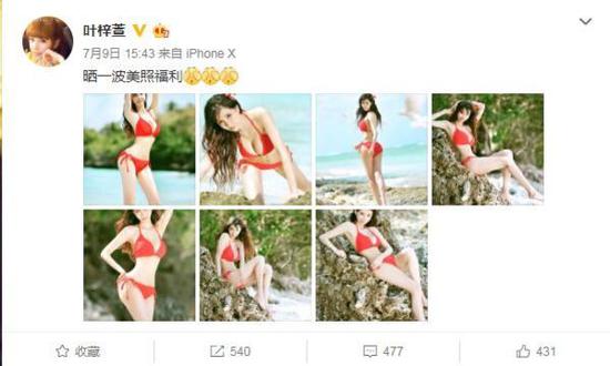 叶梓萱微博更新地也很频繁,主要是晒自己的自拍,而她的微博认证也是演员,看来她以后要在演员的道路上发展。