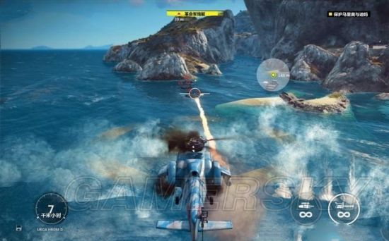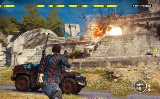 《正当防卫3》中你将扮演反抗军进行破坏,许多城镇环绕在这个美丽的世界,如果战斗没有那么多自由破坏的选项,那么城镇不会很快变的破旧不堪。本作的爆炸做的好看而且量又足。而整个故事又让你相信要想从独裁者手里解放小岛,这些爆炸是不可或缺的。