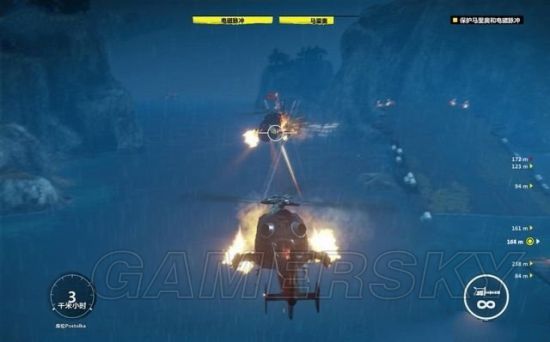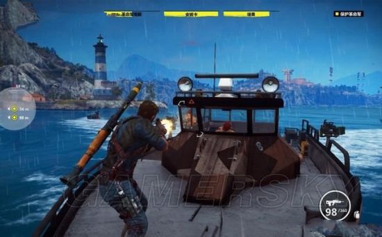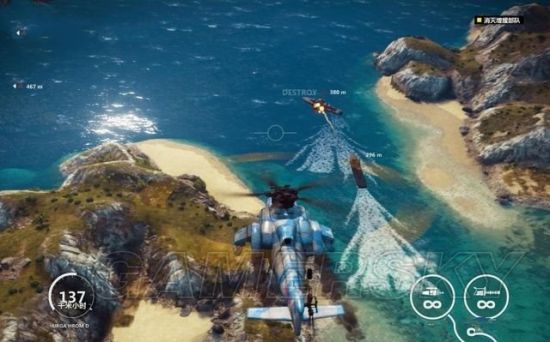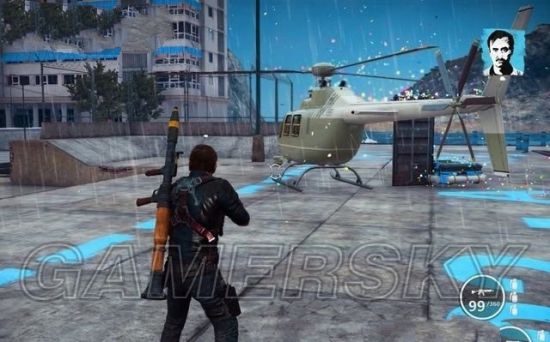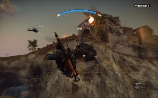 钩爪还可以让里科快速的飞到装甲车上,甚至飞到空中的直升机上进行劫持。