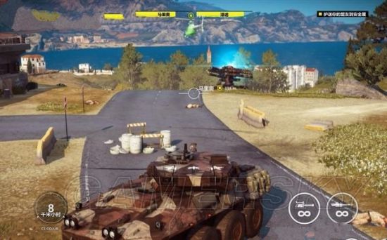走到某处,马里奥和诺泽会停止行驶,因为前方有地对空导弹发射装置,这时里科要清理少量的守军,入侵地对空导弹发器器,然后劫持一辆坦克车继续护航。