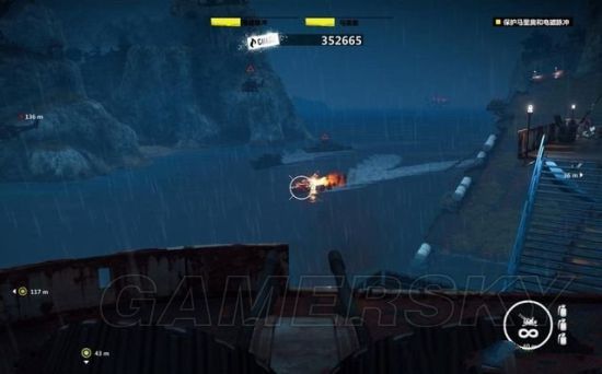 游到另一边到达发电机房,清理敌人后要摧毁三座发电机。