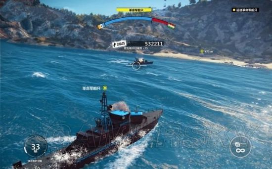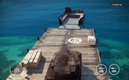 解决掉机场这边的危机后,赶往第二战场。这里是一片海湾,进入一艘革命军的舰船控制它,驾驶着它前往对面的码头。