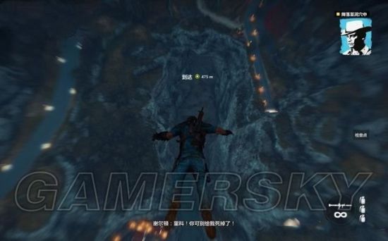 飞到特定地点会被敌人的导弹击中,主角高空坠落,不必担心,我们的英雄一出场怎么可能死掉。坠落至峡谷高度自行打开降落伞,潇洒的飘摇而下。