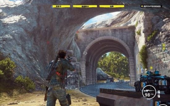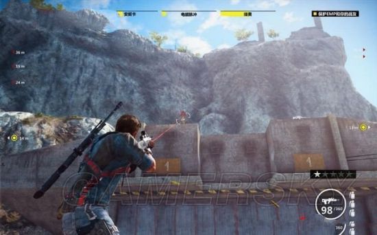 接下来要入侵两个地对空导弹基地,从悬崖跳过去。基地里只有少量的敌兵,清理后破解导弹发射器的控制面板,将其变成我方的武器。破解过程中若是遭到攻击,会中止进程。