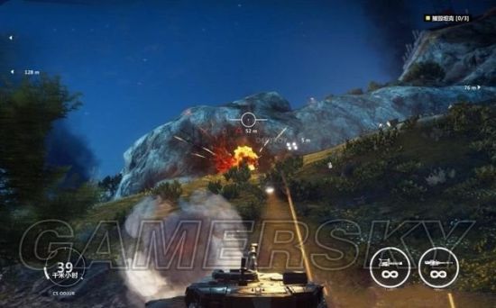 赶到目标地点,看到场中有五辆敌军坦克,快速劫持其中的一辆,炮轰其余车辆。然后再将最后一辆用爆炸物摧毁,取得胜利。
