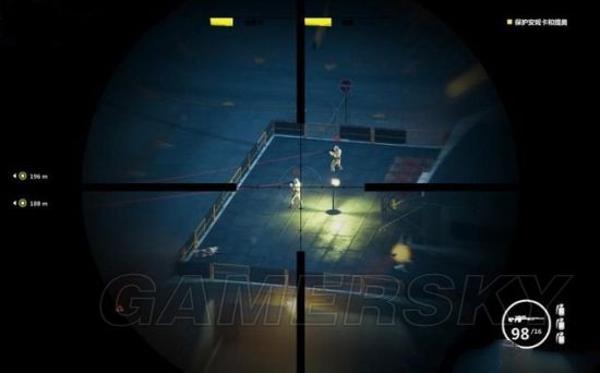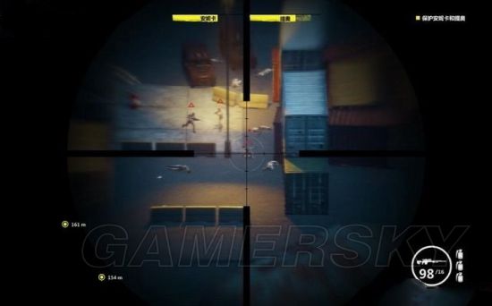 来到码头发现守卫森严,这里要调查六只集装箱,扫描器就在其中之一。触发任务时,这里不作为一处据点,所以是无法占领的,不必纠缠,在自保的前提下迅速移动,逐只拉开集装箱的门。
