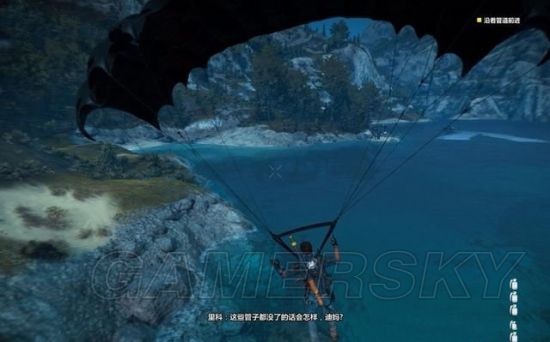 来到玛纳依上空,由直升机纵身跳下去,本任务也就完成了。从此解锁地图传送功能,但需要消费照明弹,以后在穿梭城镇和战斗时注意收集这种道具。