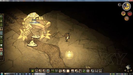 过了雨季就是火山季了,因为基地的草还没有移植完,所以今年夏天就在外面浪吧,刚好可以探探地图,找到金矿才能发展基地。在外浪习惯了,吃的问题真是不要太好解决~~冰火已经在基地解锁,并带一组硝石和一组干草出来。浪归浪,有备无患~~~