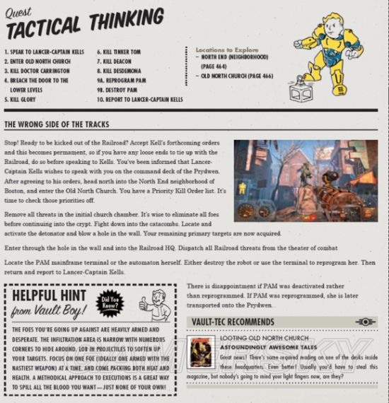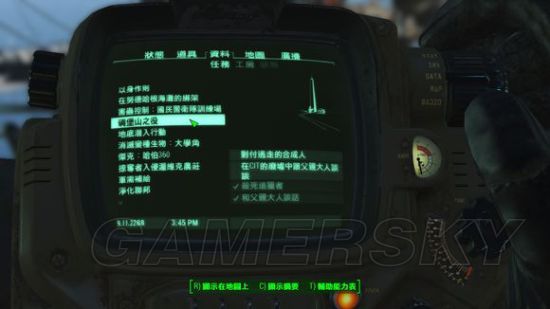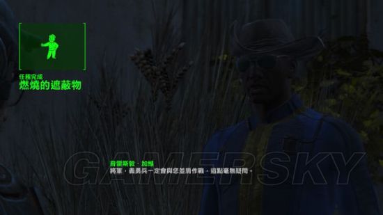 14、其他势力:铁路任务:燃烧的遮蔽物。这里可能会和我不太一样。我查了官方攻略,这项任务开启的条件是,一定要在under ground under cover(中文忘了)任务开启之前,和学院的关系破裂。本攻略中,它是在大核融合厂自动开启的,此时和戴瑟蒙娜对话,她竟然说,民兵才是废土最后的希望!