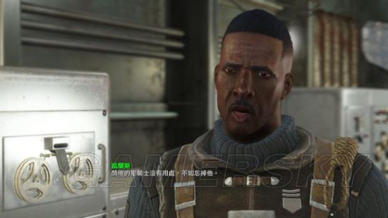 7、在这向装备控的朋友插一条,这个节点附近和兄弟会队长对话有个传奇T60头盔可以获得,军需官也开始卖一条传奇T60腿(有可能是某个兄弟会支线,具体记不清了)