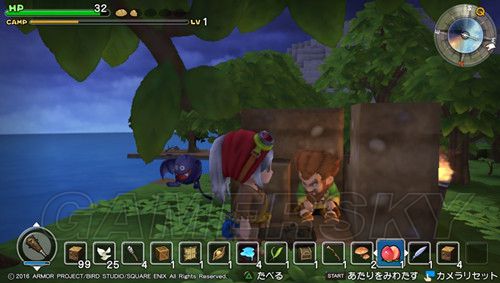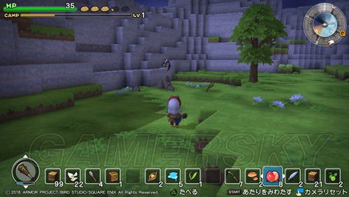 ≯捡起旁边的树枝,再利用制作台制作ひのきのぼう(初级武器),然后按O键可以调出菜单栏,并且装备刚才制作出来的武器;