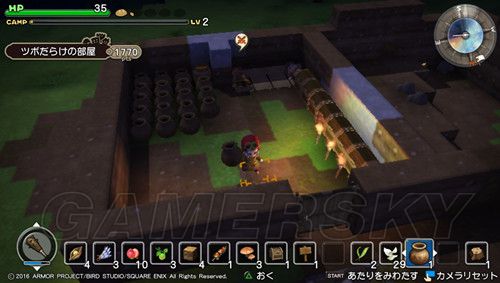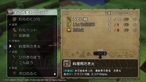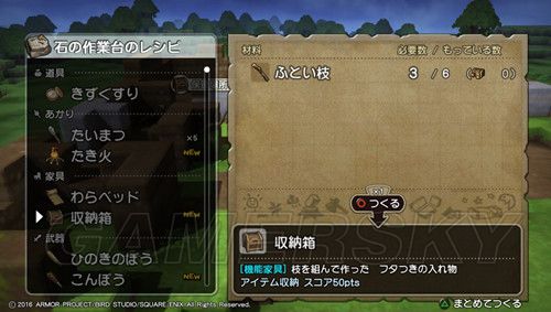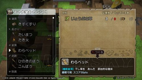 ≯然后在石制作业台生产わらベッドx2(草席),制作所需的素材是じょうぶな草×6(可以通过破坏地上较大片的草获得);