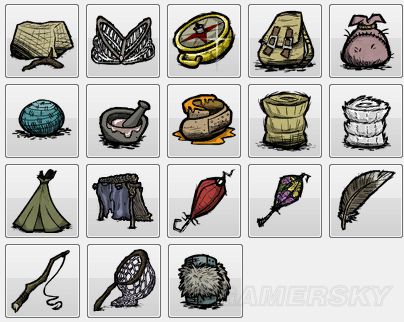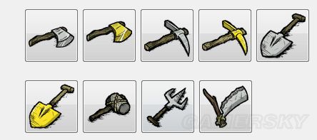 前面几个就不介绍了都知道用处,就介绍下剃刀,剃刀有两个用处:(1)像威尔逊、蜘蛛人这种会长胡子的可以用剃刀剃了有胡须,可以做肉雕像。(2)可以在晚上去刮牛毛,但春天要带牛帽,防止被发春的牛打。