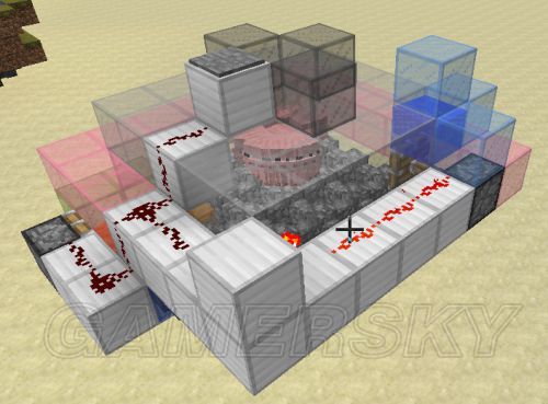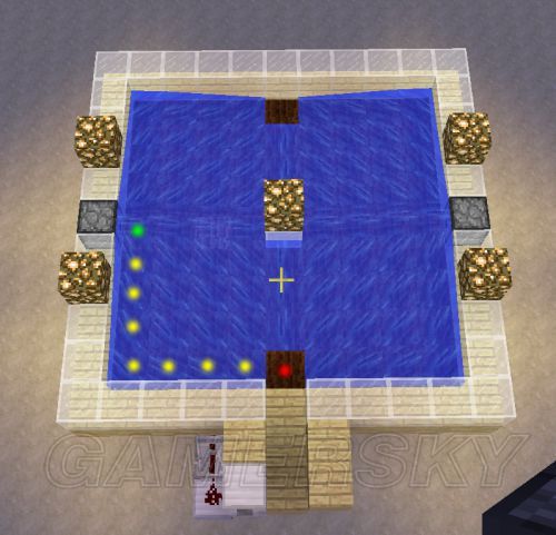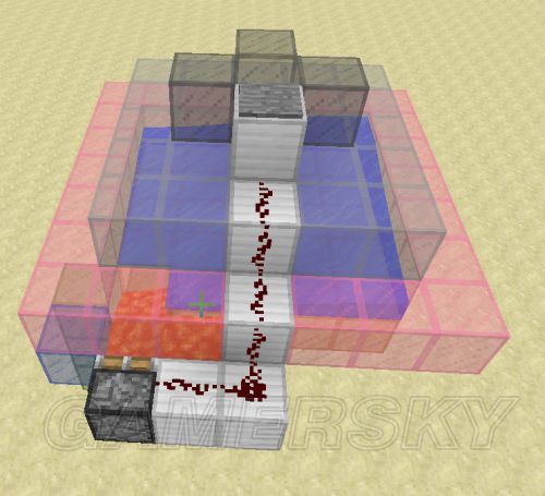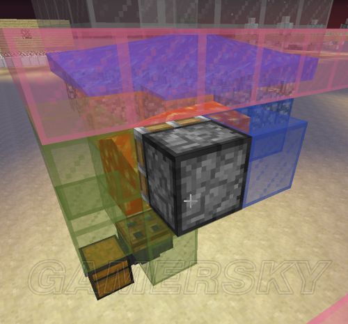 在下图位置挖3格深,2x6的坑,并在里面做一个时钟信号发生器,具体的可以看我的这个帖子。