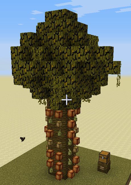 看上去是一棵普通的雨林木(树叶颜色不对是因为生物群系是沙漠。。。),上面长满了幸福感爆棚的可可豆,但是只要一按旁边的按钮……