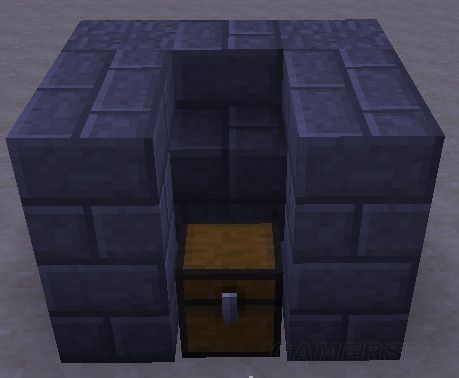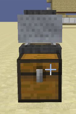 20。现在可以把整个机器封起来了,有个小技巧是,由于箱子上面不能有不透明方块(否则会打不开,漏斗也没法传东西进去),为了美观,在箱子上面可以放倒置的台阶,如下图: