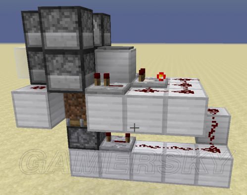 由于整个机器比较小巧,就不发分步建造教程了,看截图应该就可以明白要怎么做,细节再根据我的截图和下面的原理说明调整便可。唯一需要注意的地方是下面的中继器必须是4级延迟。