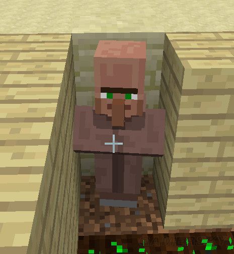 现在就轮到农民伯伯上场了,要注意一定要是这种穿棕色长袍不穿马甲的,成年的还是小朋友无所谓,但最好是你自己繁殖出来的不是从村子里抓的,否则可能会无效,原因见最后原理部分。