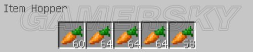 接下来在漏斗里面放上5组64堆叠的任意物品,图中不是5组满的是因为漏斗已经开始漏了一些了。