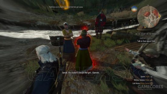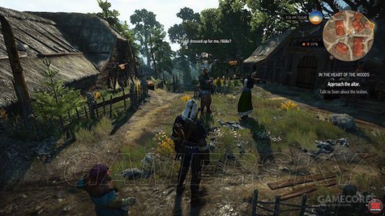 杰洛特来到史温的屋前,年轻气盛的小伙子这时候正在和一位长发杏眼的小姑娘说笑呢,看见猎魔人来了,姑娘便甩着棕色的长辫离开了。