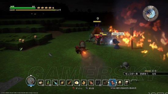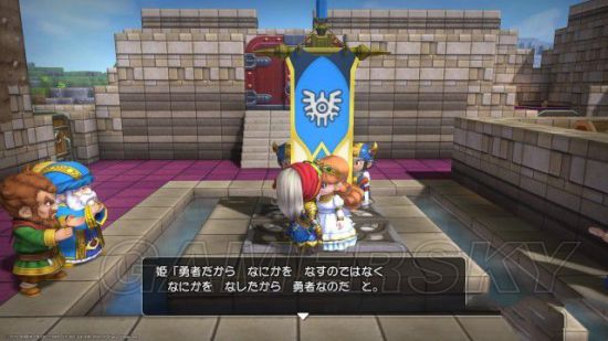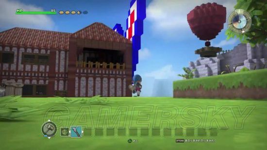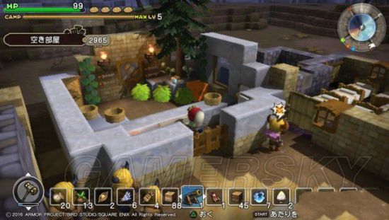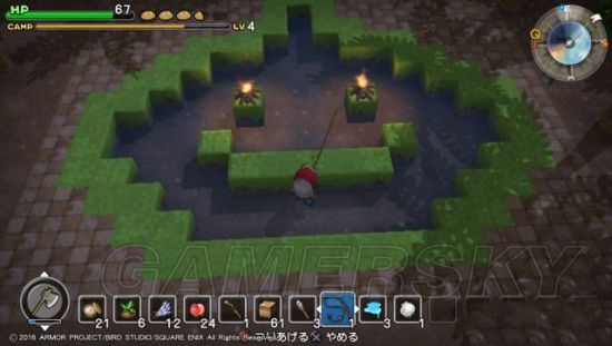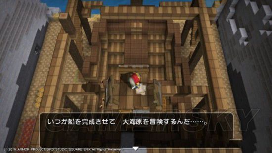 本作的主题在于建造,战斗的目的只是为了获得素材,并不会让人物升级,所以本作的战斗系统和人物成长系统都比较简陋。但建造系统相当不错,在自由模式中可以获得所有的材料与素材,房顶也有斜面材料,可以还原在正传中老玩家们颇感亲切的经典建筑。目前在日站已经有不少触手搭建了天空城、露伊妲酒场、甚至是DQ3中的阿里阿汉。除了经典建筑以外还有不少具有创意的玩家做了一些特别的建筑,比如格雷姆房子,是一个巨大的格雷姆头,但里面是座房子;还有2D像素点阵风格的怪物图案,鸟瞰视角下观察起来颇为壮观;此外还有游戏本身就有的温泉过山车,不禁想到DQ5中连续坐了两年过山车的龙神。