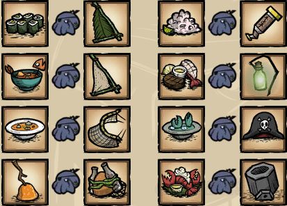 ④海上布袋:6格储物栏,延缓食物腐烂速度50%。(和rog熊皮包差不多)