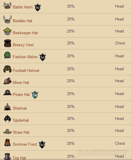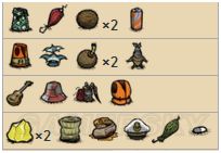 ⑤厨师袋:8格储物栏,延缓食物腐烂速度50%,厨师沃利专属物品,可制造。
