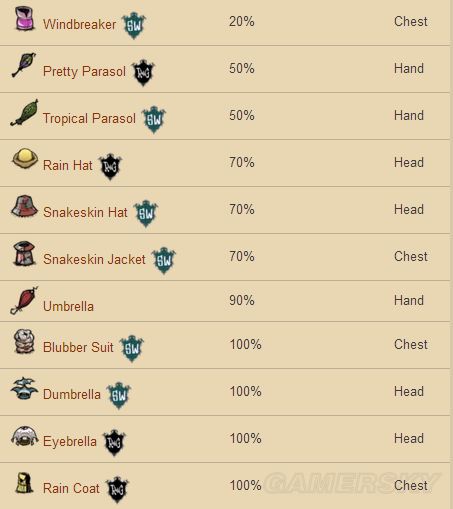 33。人物在积水坑上行走会被延缓移速,并且湿度大幅度上升,除非拥有防水装备。