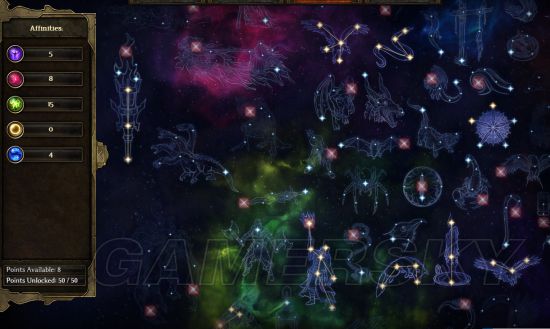 4。激进方向,火炬星座(8红15绿)虽然陨石雨是高级烟花特效,但是前面的点效果不错,可以不点出技能。灯笼星座(10绿,奖励3绿2黄),限制魔刃魔杖法器副手,对于法师来说不算什么大限制,属性都不错。王冠星座(4紫6绿,奖励1紫1绿),元素风暴堆叠起来伤害不错,还有减少目标点数元素抗性(建议绑在毁灭上,在一个区域里能触发好几个,容易造成堆叠伤害)。