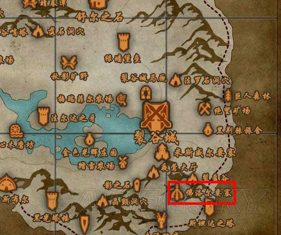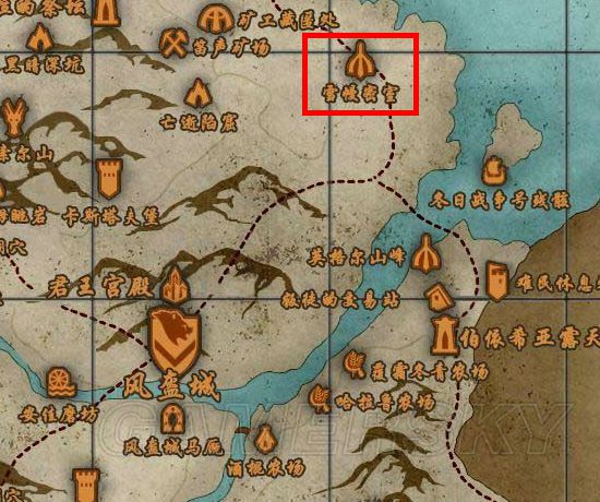 2,失落溪谷堡垒。它位于比雷古奇矿场正西面不远的地方,同时位于马卡斯城的东面偏南一点。龙语墙获得。3,铁岩石冢。它是一处诺德人遗址,位于冬堡和雪漫城之间,具体在天然通道的南边偏西南 。龙语墙获得。