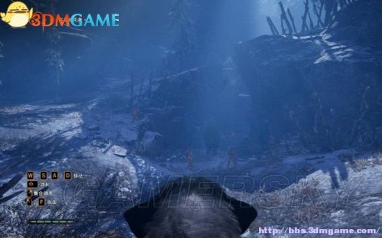 陷阱还是较容易辨认的,如图中所示,前面用松枝搭成,上覆白雪的地方就是陷阱位置了。