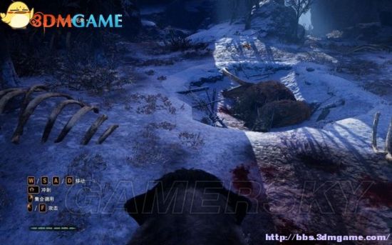 来到如图位置,看到陷阱中死去的长毛象,这是给你提醒,前方有猎人们设置的陷阱。
