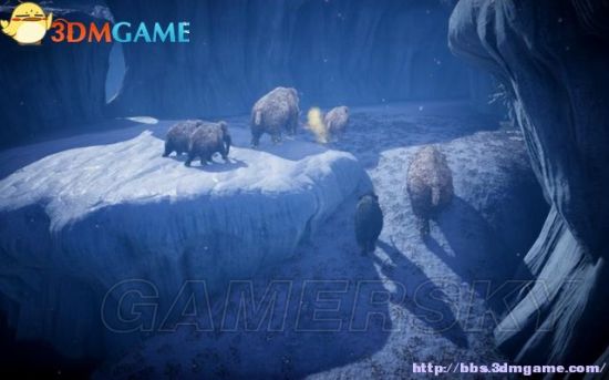 沿着上面的谷道行走,会看到崖边发光的岩石,那都是猎人们猎杀长毛象的陷阱。