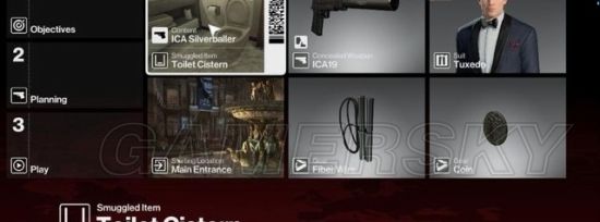 开始任务前,需要进行计划配置,将一把消音手枪事先藏到马格莉斯的卫生间马桶上。
