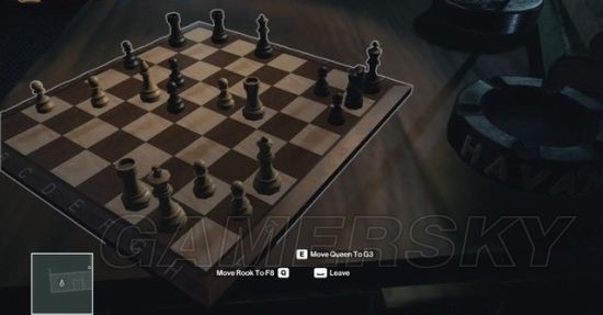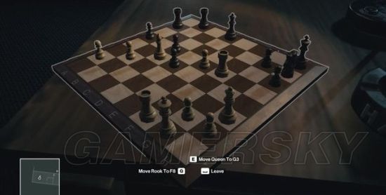象棋大师在棋盘前沉吟片刻下了一步棋,等屋里没人,再上去选择E-“MoveQueenToG3”,继续等象棋大师回来。达成挑战“给倒下的同志们”。