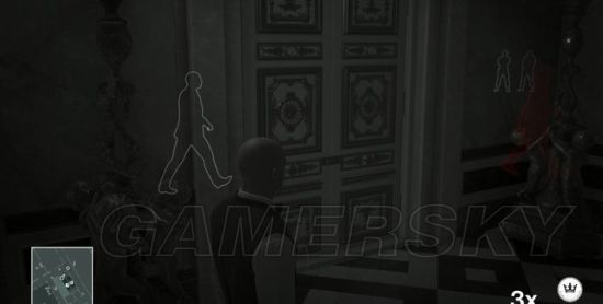 来到阳台看风景的马格莉斯会被倒地的保镖引过去,这时站到阳台的另一端(不要被会议室里的人看到)开枪射杀。